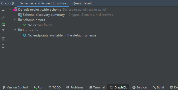 - 在idea下方工具栏也会出现GraphQL栏,可以检查我们书写的GraphQL语法是否正确