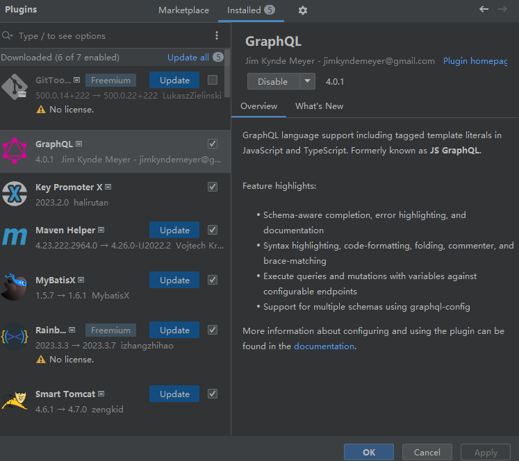- 编写.graphqls文件前,我们可以在使用idea安装一个GraphQL插件