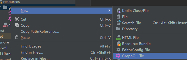- 安装后新建文件时,便可以选择.graphqls文件