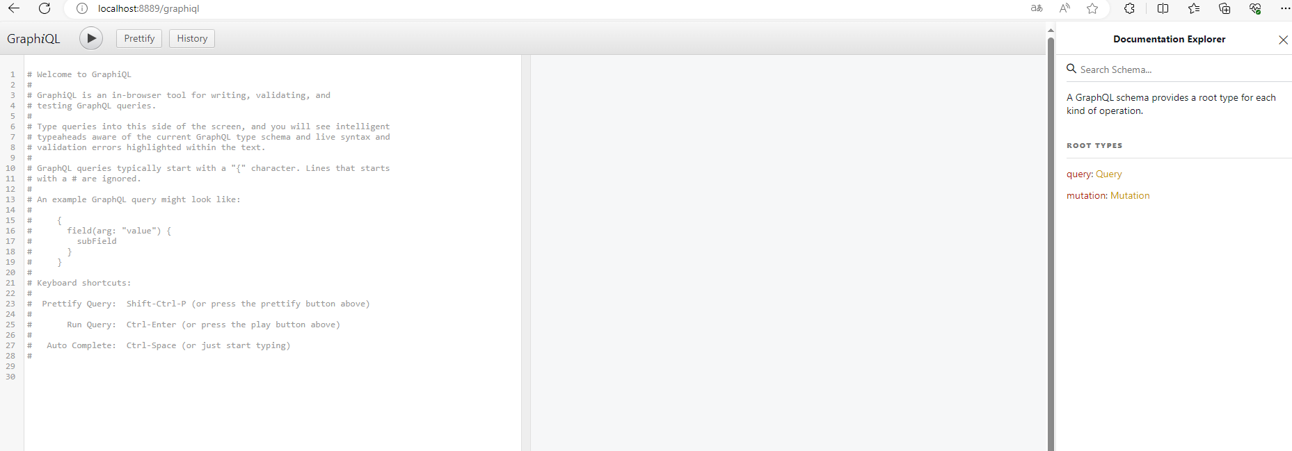 - 访问地址:http://localhost:8889/graphiql 端口号为启动服务的端口号,我这里是8889